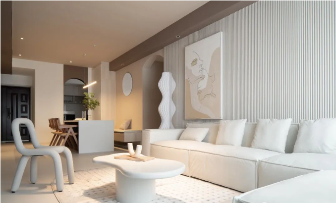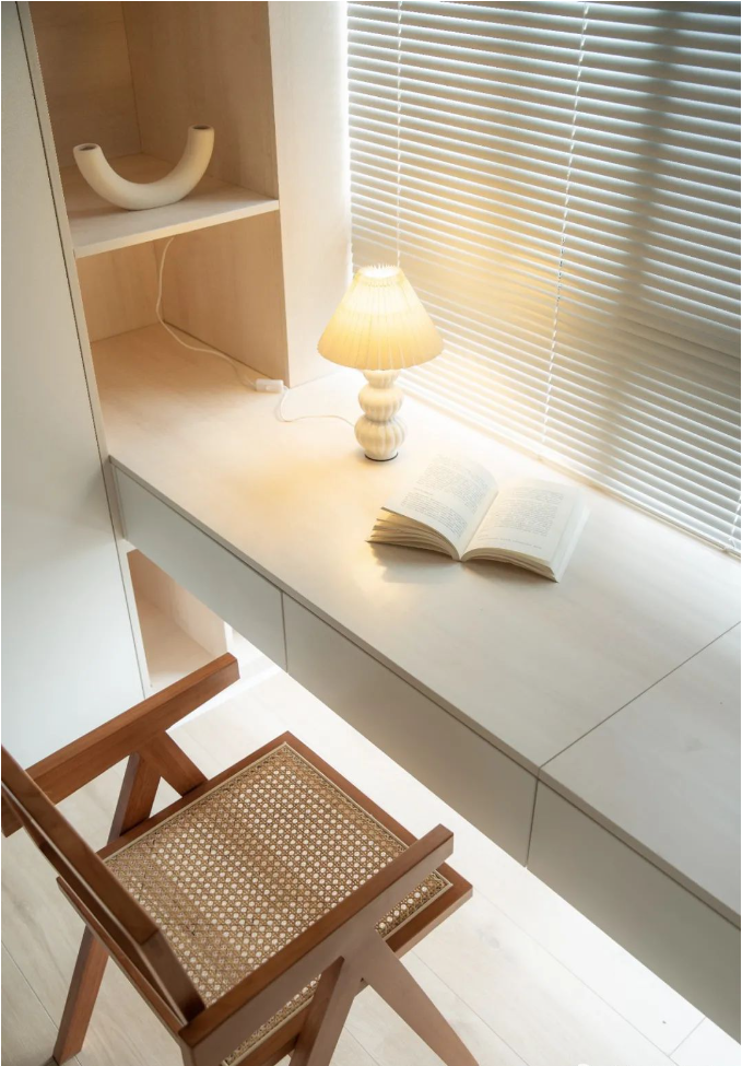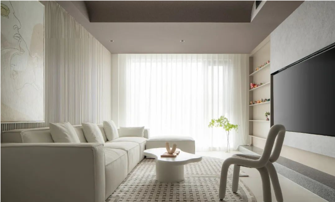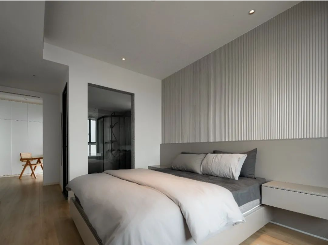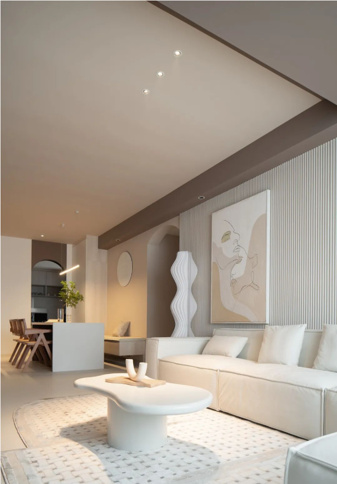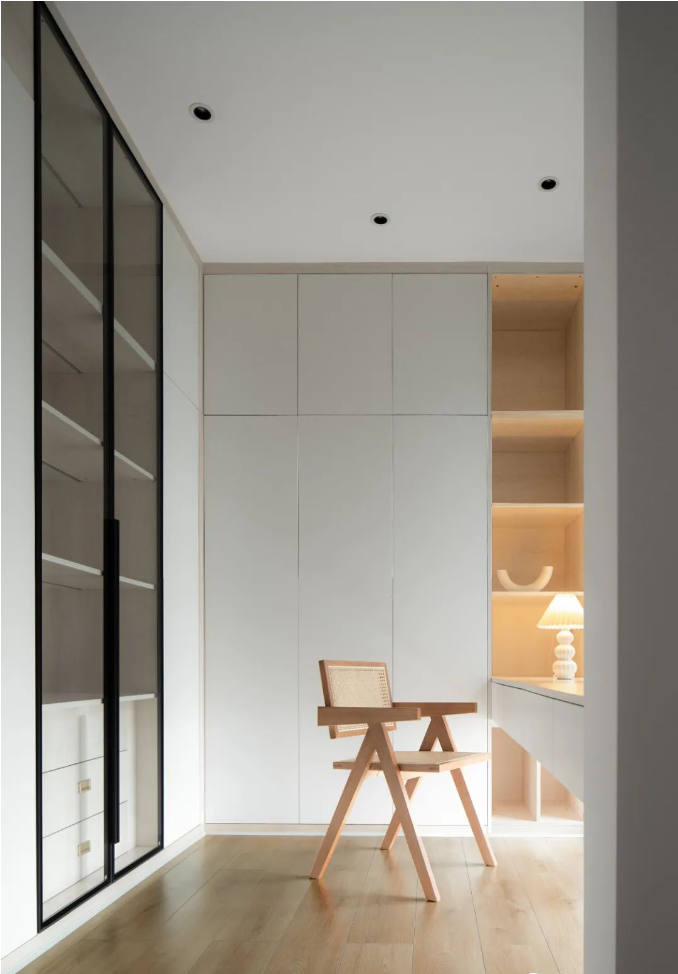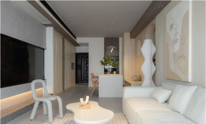 設計理念:本案是一套面積為102平米的三屋室,屋主是一對年輕夫妻,要求三房改兩房,有獨立衣帽間,盡可能多的收納空間?臻g調性要時尚,簡約,高顏值。自貢名筑設計師通過結構改造、色彩、燈光、軟裝搭配呈現出奶油色系的溫柔空間。