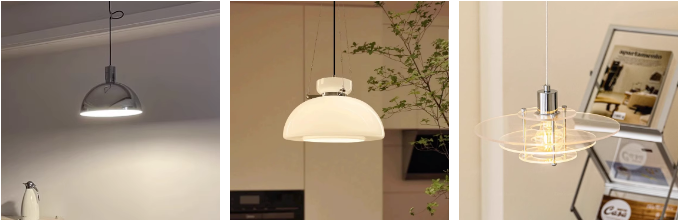 中古風燈具也極具幾何形態特征,最為常見的就是球形曲面的造型,或者衛星放射狀造型,以及飛碟圓盤型,所用的材料以玻璃、樹脂、或者金屬材料為主。