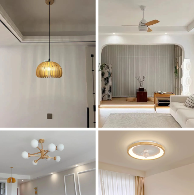 在燈具的選擇上,如果預算充足,就直接做無主燈,柔光為主,硬光為輔。如果預算低,就直接選木質的造型燈,比如南瓜燈、曲奇燈、云朵燈等,色溫選3000 K到4000 K的更溫馨。