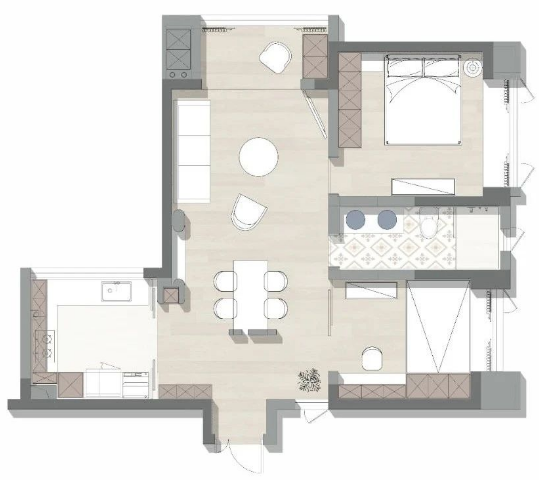 本案是一套面積為83平米的兩居室,屋主想要在日常生活里,更多的體驗到和諧、靜謐以及無限松弛的居家體驗,風格上選擇了更具東方意境的新中式;功能上需增強儲物設備,并擴大廚房與衛生間的使用面積。