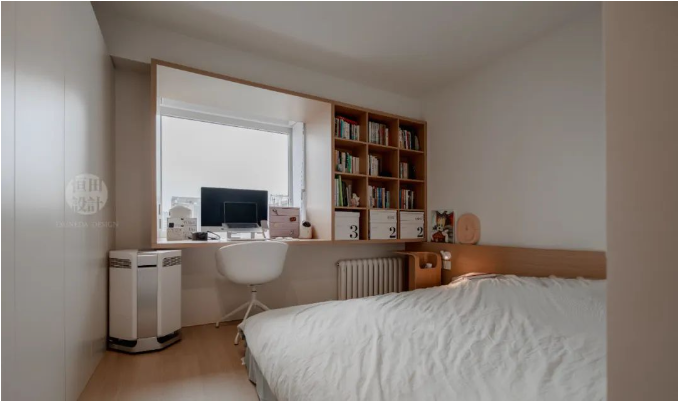 原雞肋飄窗,和腰同高 → 搖身一變,成功變身超長書房。
