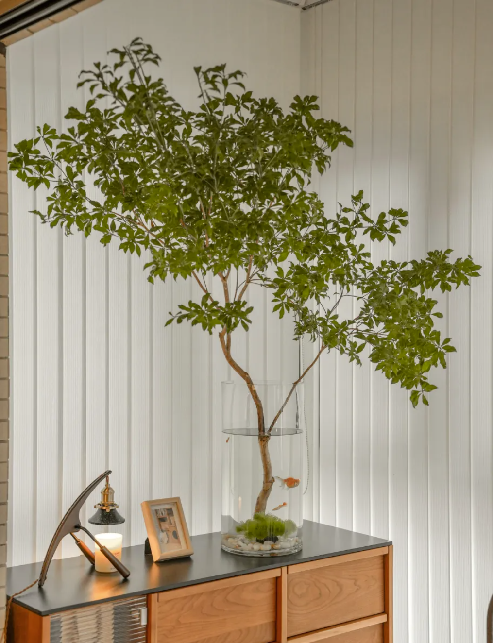 進屋的第一眼給人印象最深刻,不要擺假花假草,適合擺放喜陰、不需要太多陽光的綠植、干花