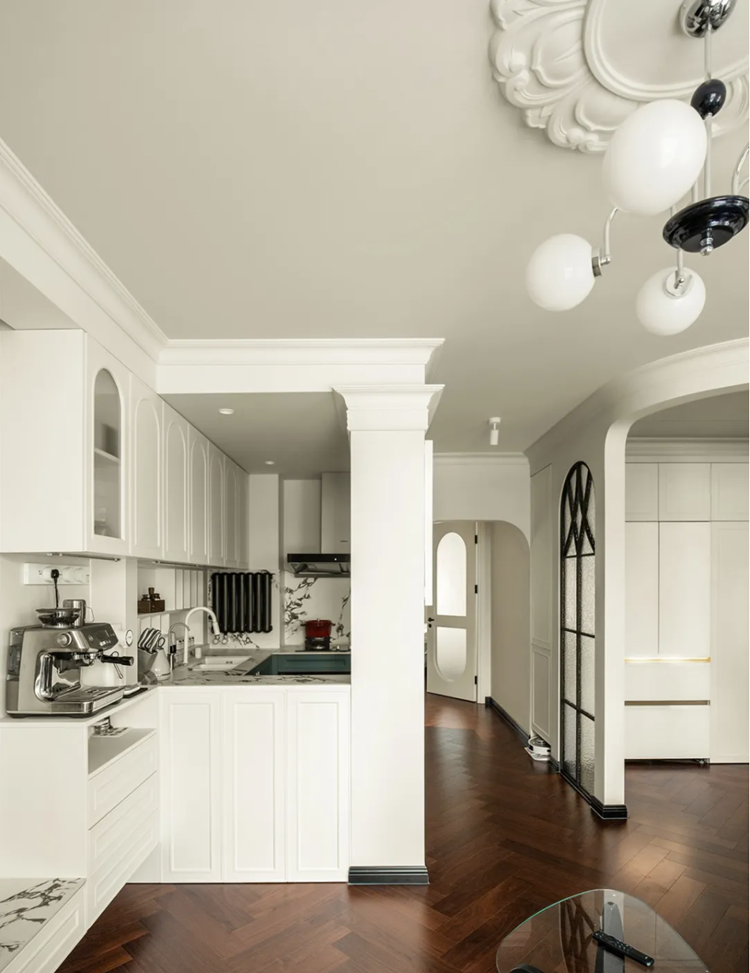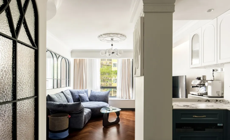 在這使用面積不足64平米的兩居室中,設(shè)計(jì)師巧妙融合新藝術(shù)運(yùn)動(dòng)精髓,以自然曲線與鮮明色彩,為屋主夫婦量身打造了一個(gè)既實(shí)用又充滿法式浪漫的溫馨小窩。面對(duì)原始布局的不合理,設(shè)計(jì)師通過重塑玄關(guān)、打造開放式廚房、調(diào)整客臥布局及衛(wèi)生間三分離等精妙設(shè)計(jì),不僅徹底解決了采光、通風(fēng)及動(dòng)線問題,還完美融入了獨(dú)立辦公區(qū)與充足儲(chǔ)物空間,滿足了夫婦倆的所有生活與審美需求,讓每一寸空間都煥發(fā)新生。